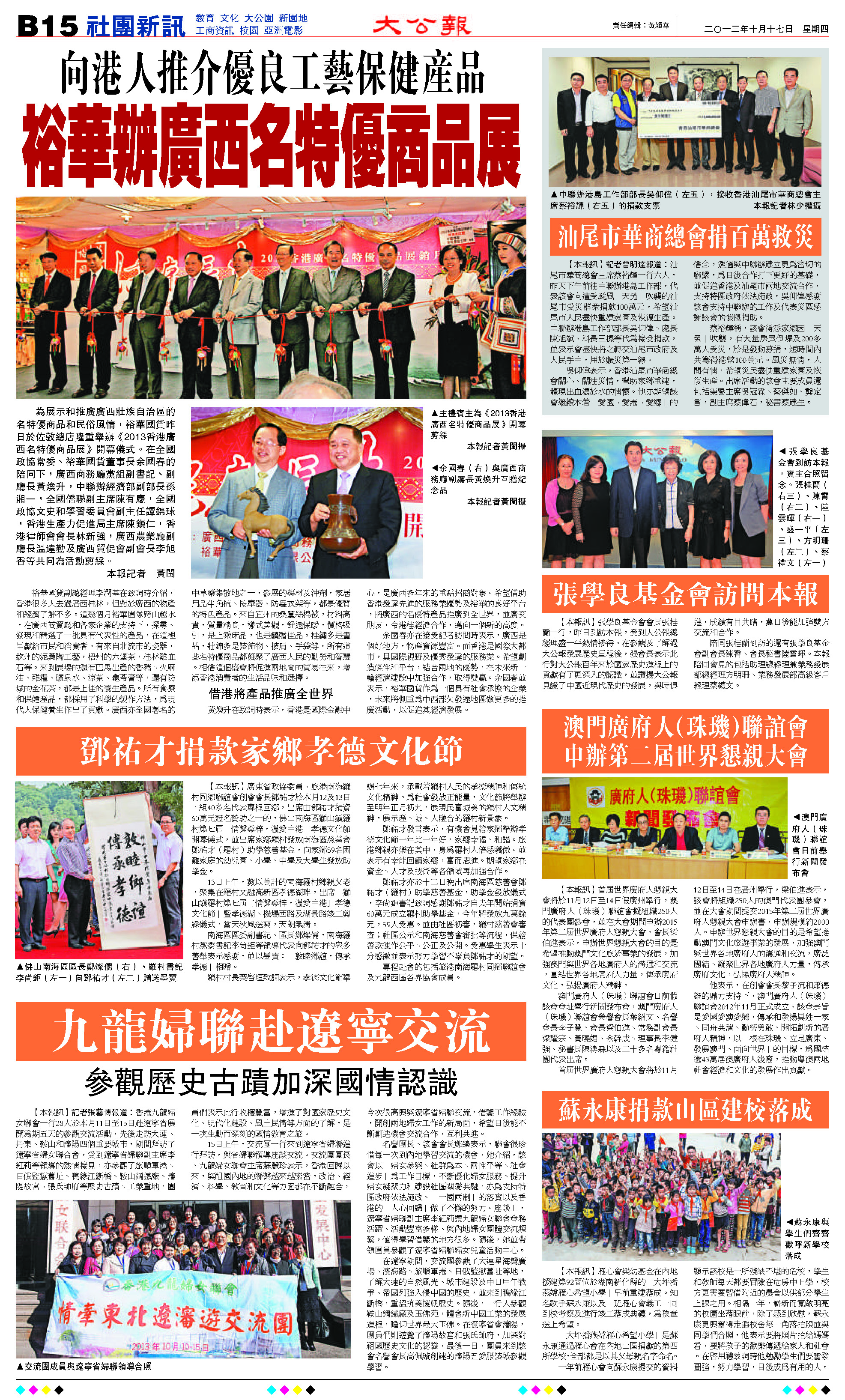 「大公報」報導- 蘇永康先生於本會援建學校消息